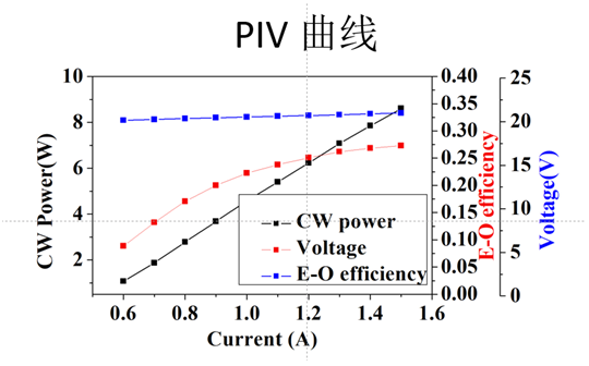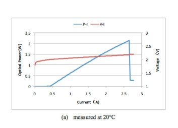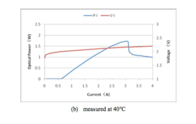 圖3:課題組一為該項目已開發出紅光LD芯片及PIV曲線,室溫和40攝氏度(發表于ICDT-2018)