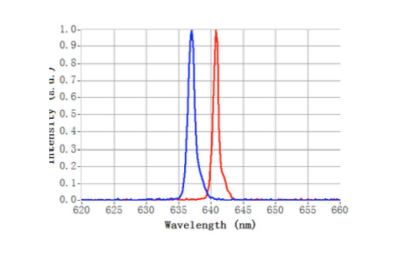 圖4:課題組一為該項目已開發出紅光LD芯片的光譜曲線,室溫和40攝氏度(發表于ICDT-2018)