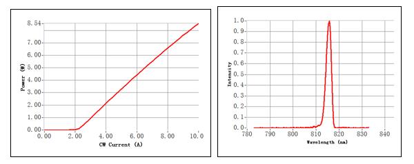 新款8W 808nm在55攝氏度的PI及光譜曲線