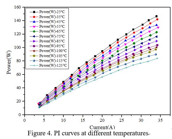 隨溫度變化的PI曲線圖