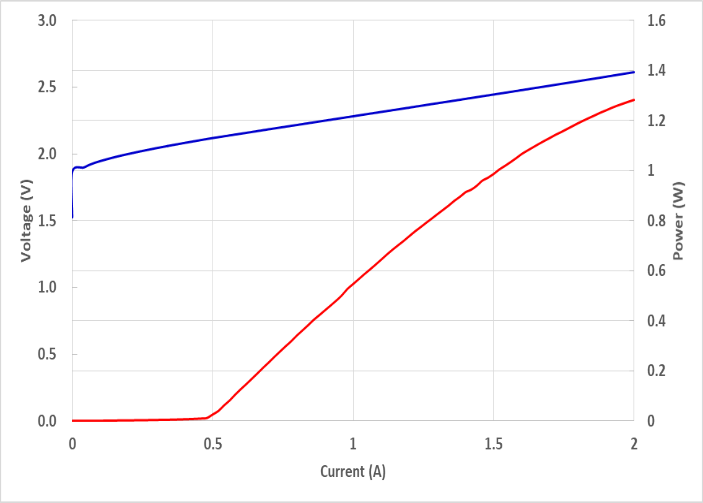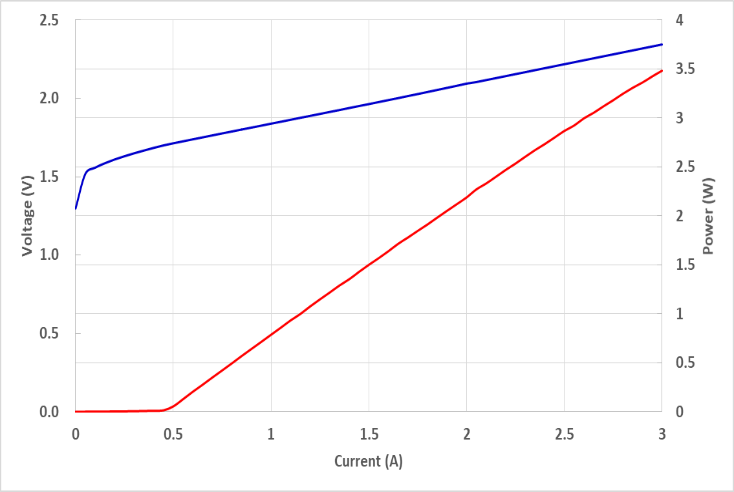在連續功率808nm器件方面,瑞波光電開發了3W TO9器件,可用于激光照明和醫美領域,型號RB-808B-150-3-1-TO9,工作電流2.6A,工作電壓2.3V,斜率效率1.4W/A.