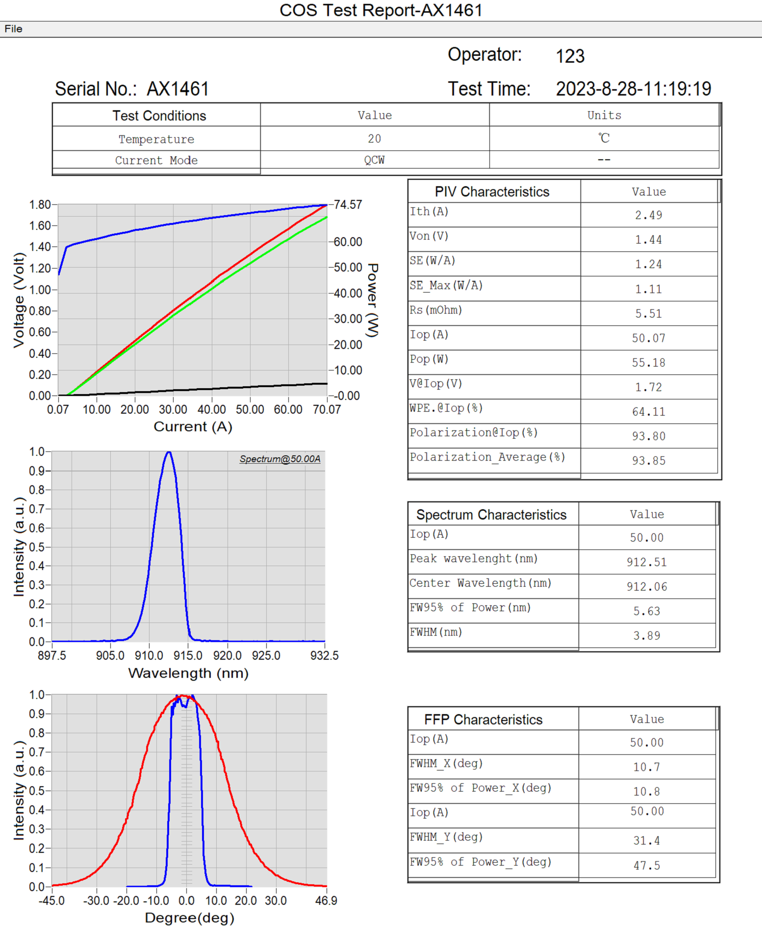 為了解決當前行業大功率LD測試難的痛點問題,日前深圳瑞波光電子有限公司的專業測試設備團隊,創造性地攻克了在大電流(超過CW70A)注入下的半導體激光器測試技術難題,在第一代全自動COS測試機的基礎上,推出支持更大電流的第二代大功率LD 全自動COS測試機。目前新型COS測試機已經獲得國內多家半導體激光器制造商的訂單,顯示出業界對新型測試設備的強力認可和迫切需求。