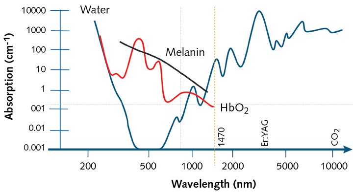 除了以上提到的醫(yī)療領(lǐng)域,1470nm激光器在美容領(lǐng)域也有廣泛的應(yīng)用,例如現(xiàn)在熱門(mén)的嫩膚領(lǐng)域不斷展示出新的潛力。與其他波長(zhǎng)的激光相比,1470 nm的激光對(duì)水有較好的吸收系數(shù),可穿透真皮層約400 μm。而且波長(zhǎng)超過(guò)1400nm的激光可以被眼睛的角膜和晶狀體強(qiáng)烈吸收,這意味著能量通常不會(huì)到達(dá)視網(wǎng)膜。在最大允許曝光(MPE)下,波長(zhǎng)超過(guò)1400nm的激光光源被認(rèn)為是人眼安全的。