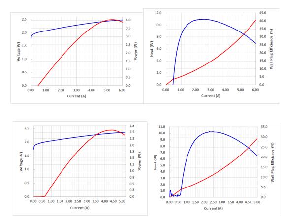 Figure 1: Comparison of PIV curves of Raybow Optoelectronic 1W 638nm high-power red laser chip under continuous current (Figure 20℃, figure 40℃)