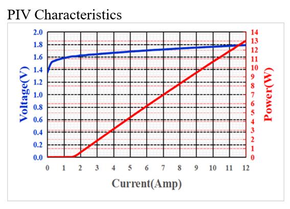 新款10W 808nm半導體激光芯片型號為RB-808B-190-10-4-SE,支持COS封裝,發光條寬為190μm,腔長4mm,光電轉換效率58%,使用壽命可達20000小時以上。另外該芯片也采用了新型外延結構設計和材料外延,先進的非泵浦窗設計和制備技術以及干濕法腐蝕結合自對準工藝技術,控制條寬的一致性,特別保證大批量生產下的高成品率,降低激光芯片成本。同時新技術的采用大大提高的耐高溫特性,使之可以在環境溫度60℃甚至更高溫的情況下連續工作。