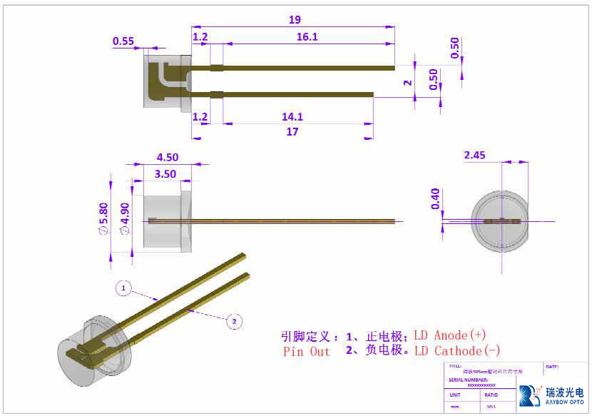 深圳瑞波光電子有限公司只針對公司旗下的905nm芯片系列(見下圖)提供塑料封裝。