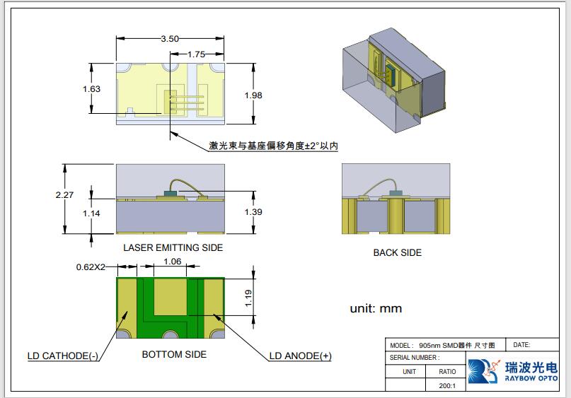 RAYBOW OPTO, a leading semiconductor laser chip solution provider, recently launched a new Surface Mount version (SMD) 905nm pulsed semiconductor laser diode.