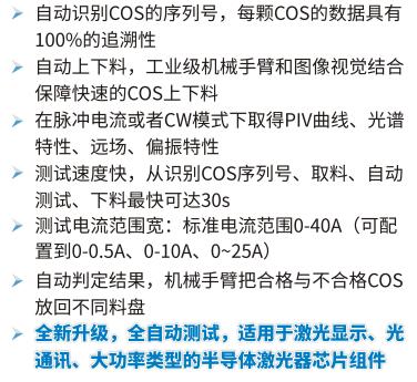 -對(duì)貼片好的COS、C-mount、TO等封裝器件做全自動(dòng)表征測試